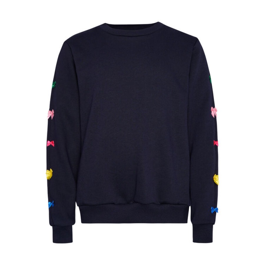 σε χρώμα μπλε σκούρο με ιδιαίτερα πολύχρωμα φιογκάκια στο μανίκι,