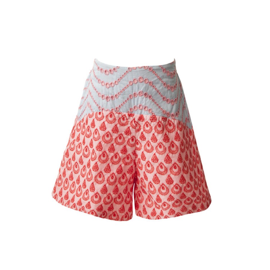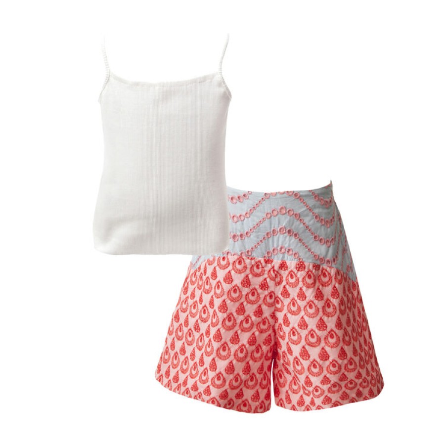 Σετ για κορίτσι με τοπάκι σε χρώμα εκρού και σορτς γαλάζιο κόκκινο