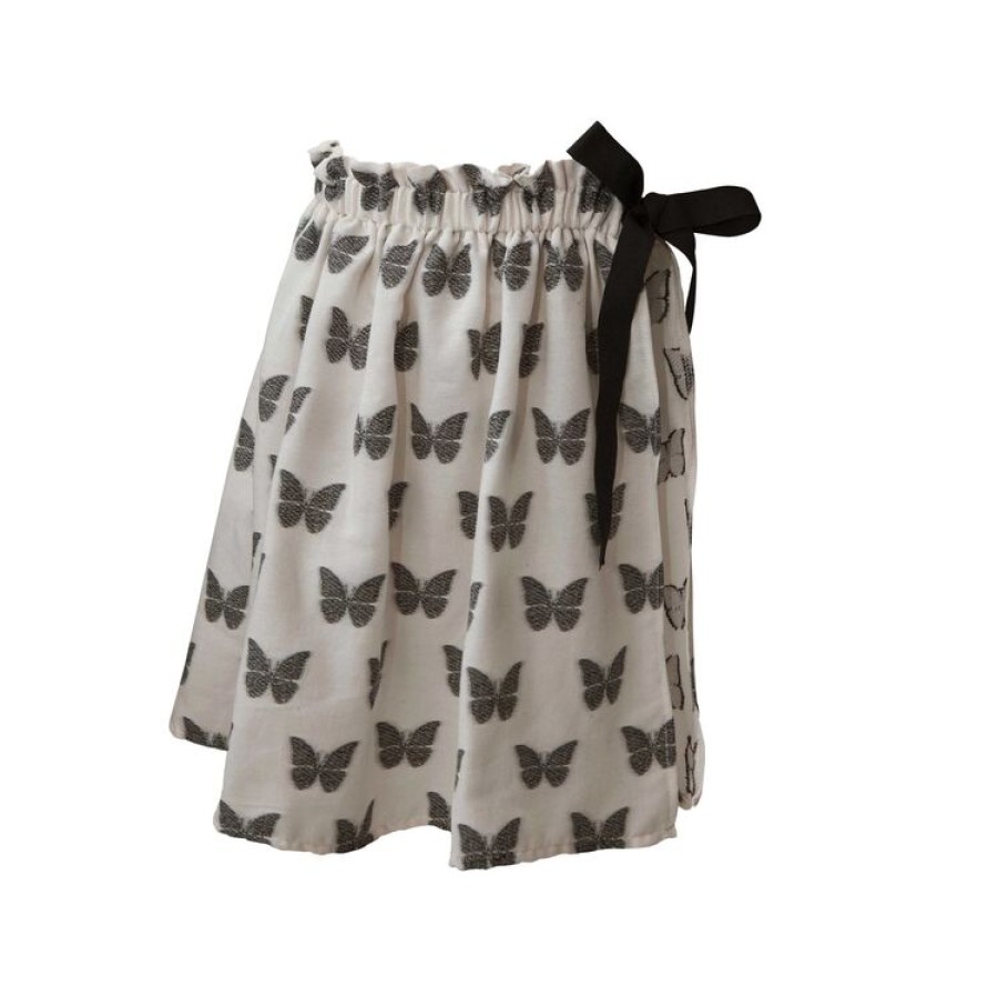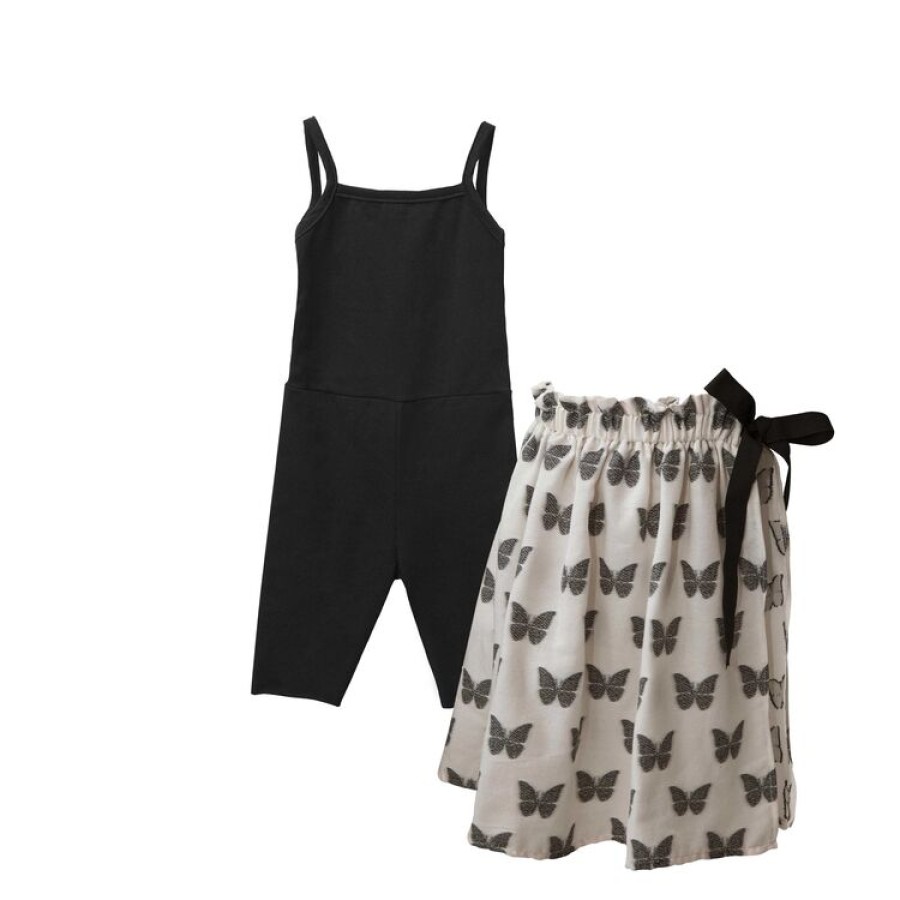 Σετ για κορίτσι με ολόσωμο σορτς σε μαύρο χρώμα και φούστα ασπρόμαυρη με δέσιμο και σχέδιο πεταλούδες