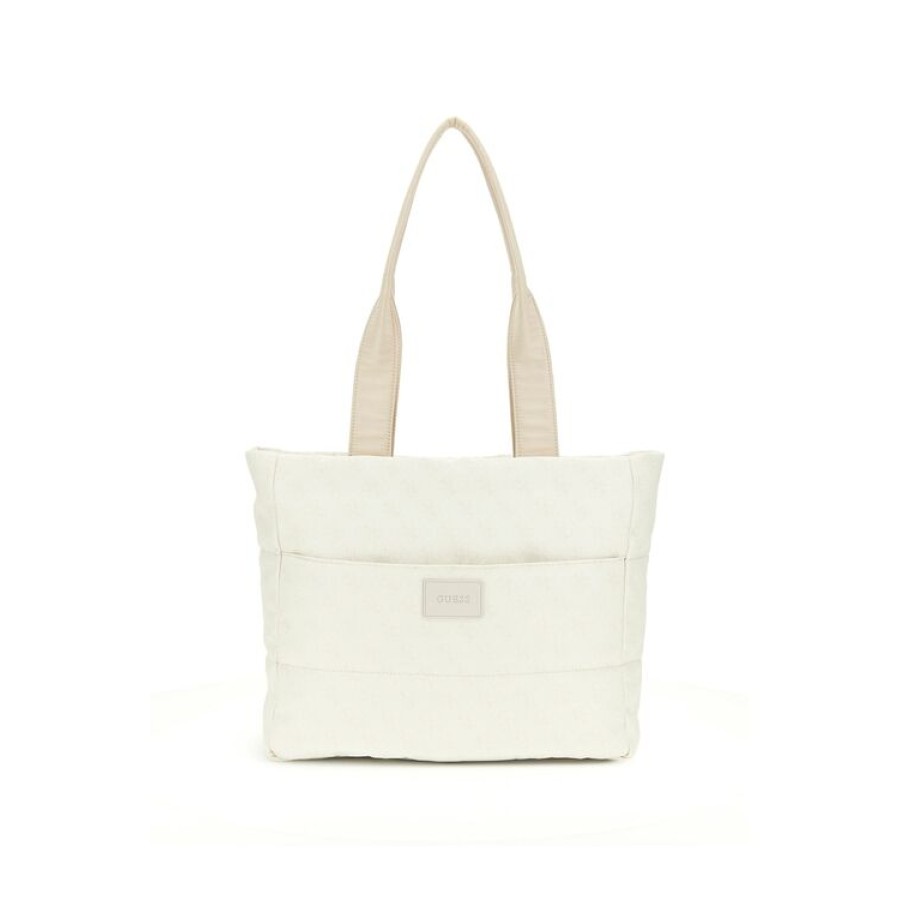 Τσάντα ώμου καπιτονέ εκρού Guess