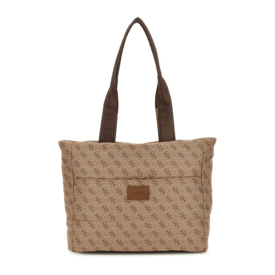 Τσάντα ώμου καπιτονέ μπεζ Guess