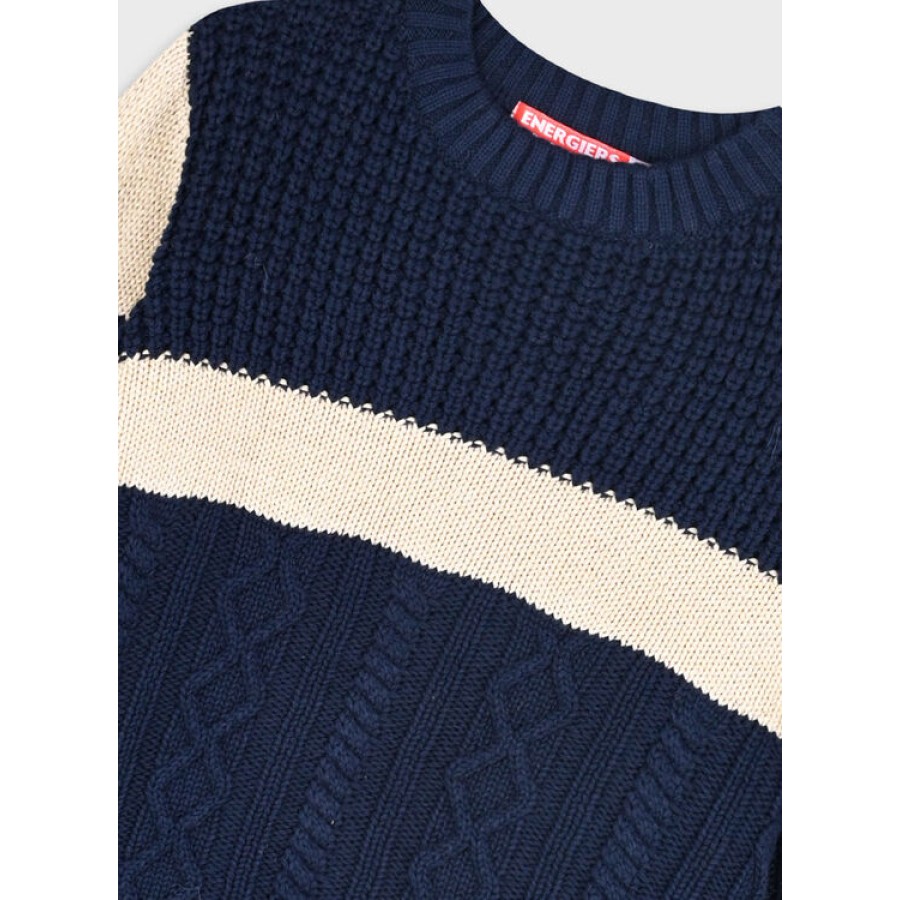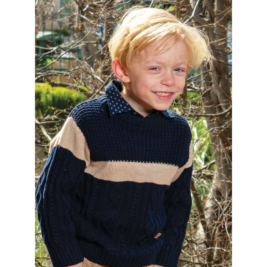 Μπλούζα αγόρι πλεκτή μπλε με μπεζ