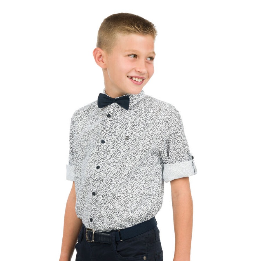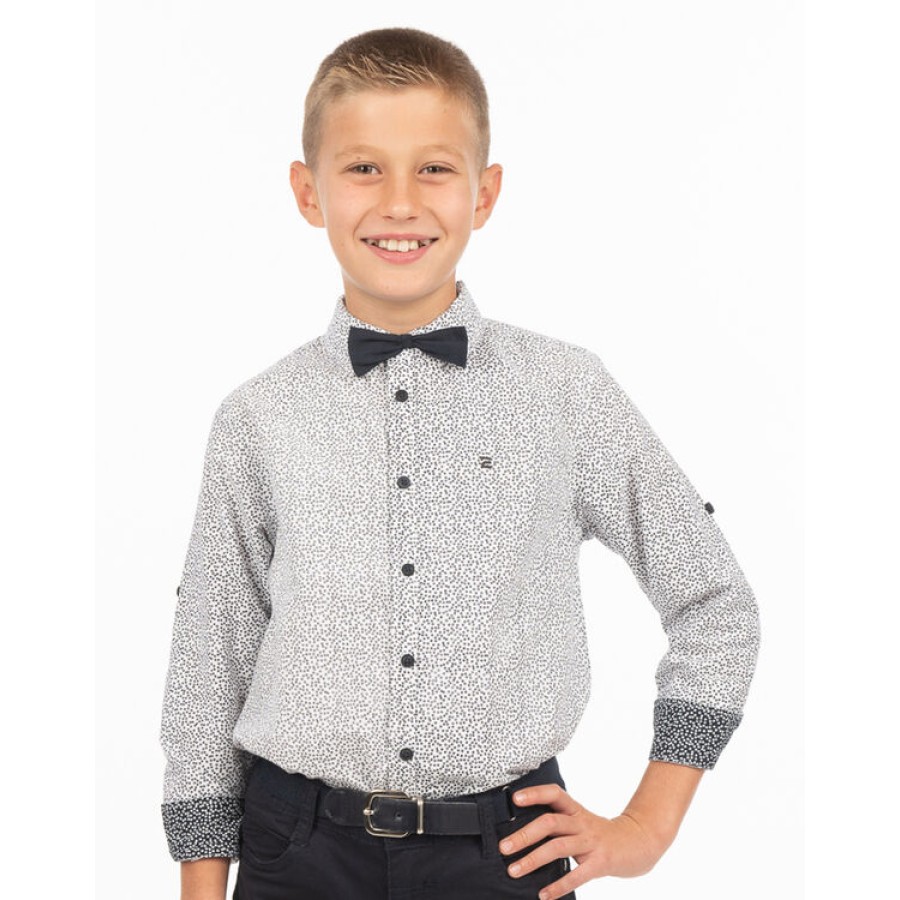 Εμπριμέ βαμβακερό πουκάμισο και μονόχρωμο παπιγιόν