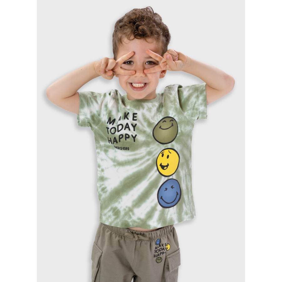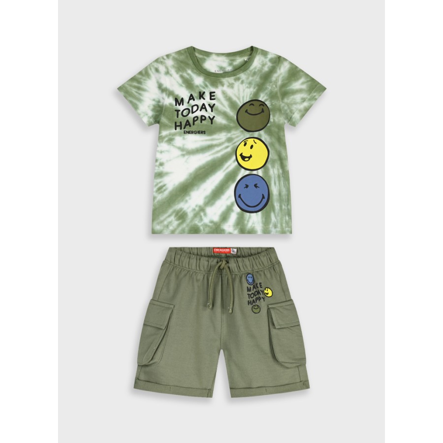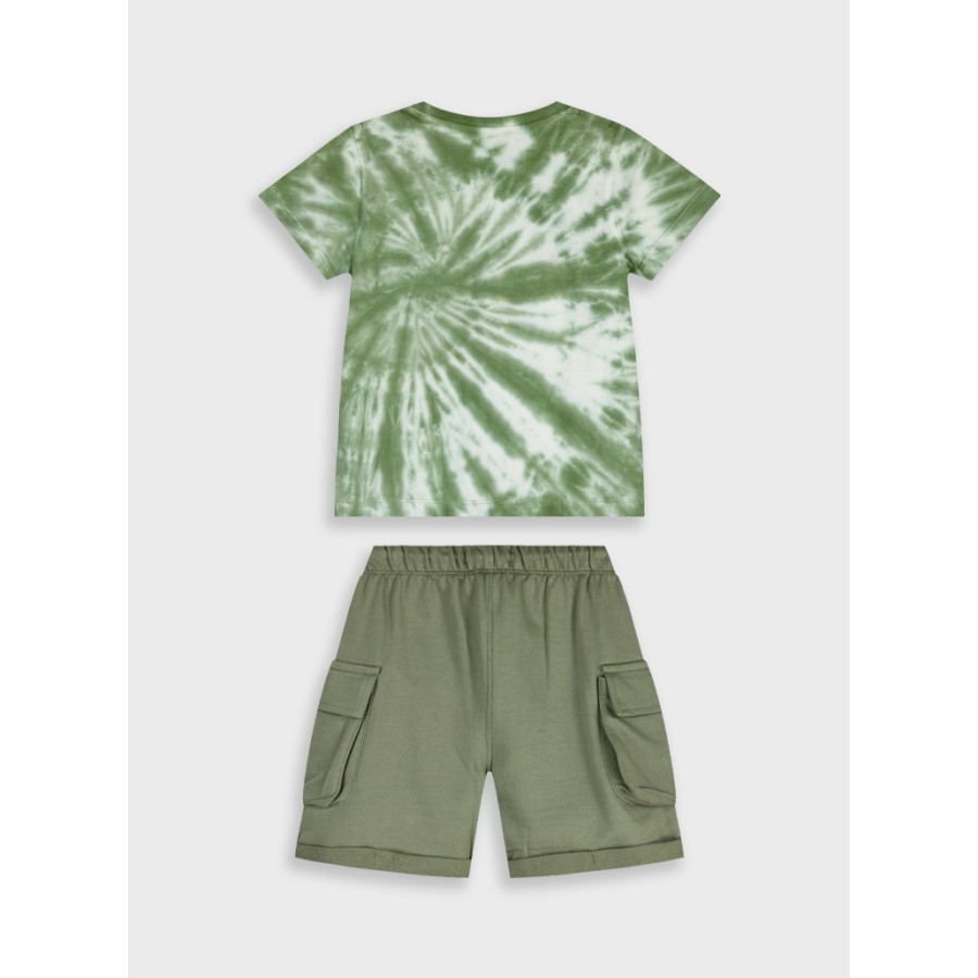 Σετ με κοντομάνικη μπλούζα σε χακί/λευκό χρώμα