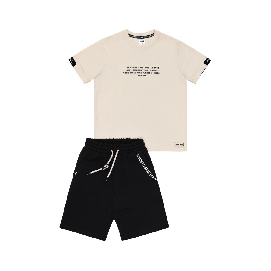 Σετ με κοντομάνικη μπλούζα σε χρώμα μπεζ