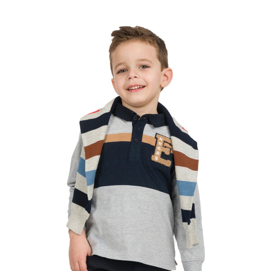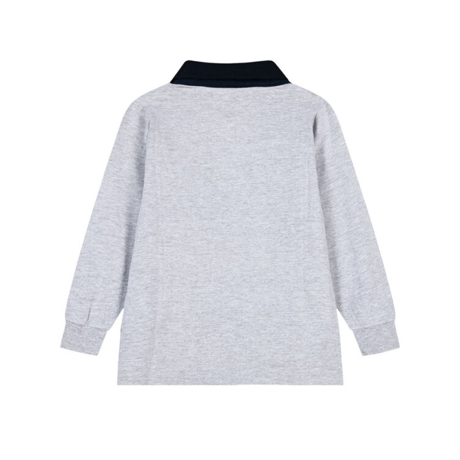 Βαμβακερή μπλούζα μακό με πόλο γιακά και κέντημα, για αγόρι
