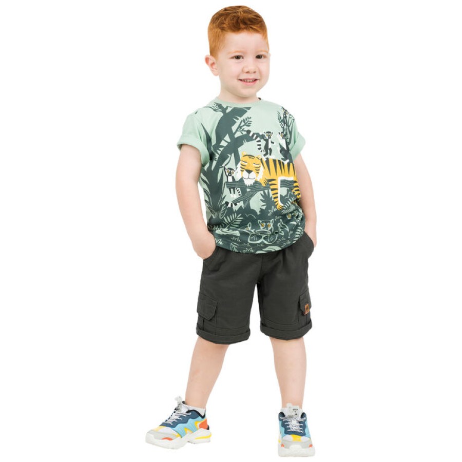 Βαμβακερή cargo βερμούδα με ελαστικό ζωναράκι και κορδόνι.