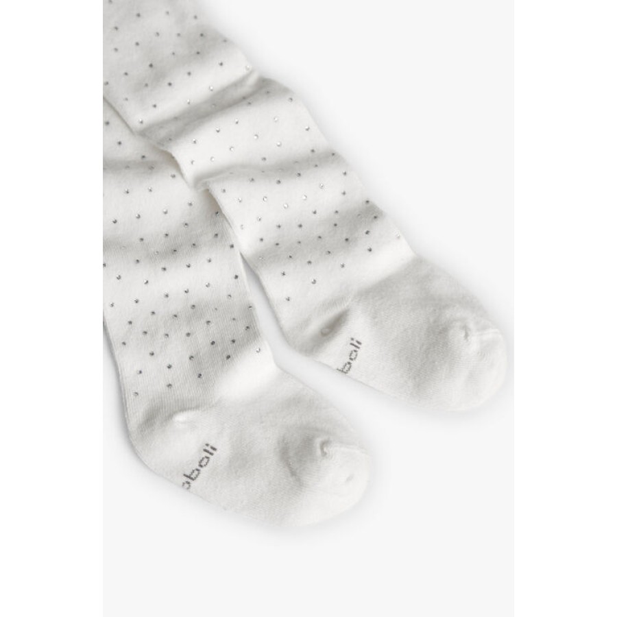 Καλσόν χοντρό με στρας σε χρώμα εκρού