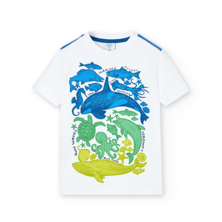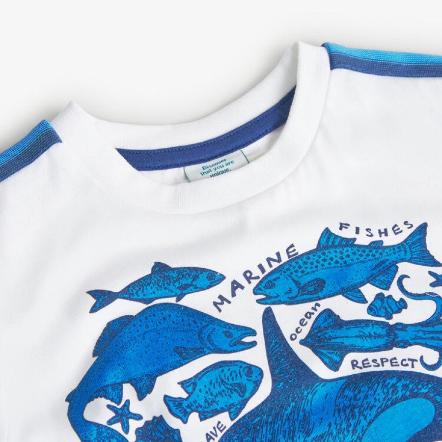 T-shirt αγόρι λευκό με μπλε λεπτομέρειες και εκτύπωση