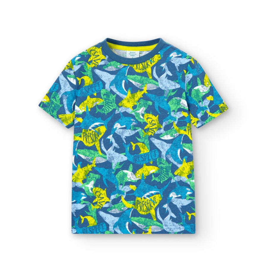 T-shirt αγόρι μπλε και εκτύπωση ψάρια