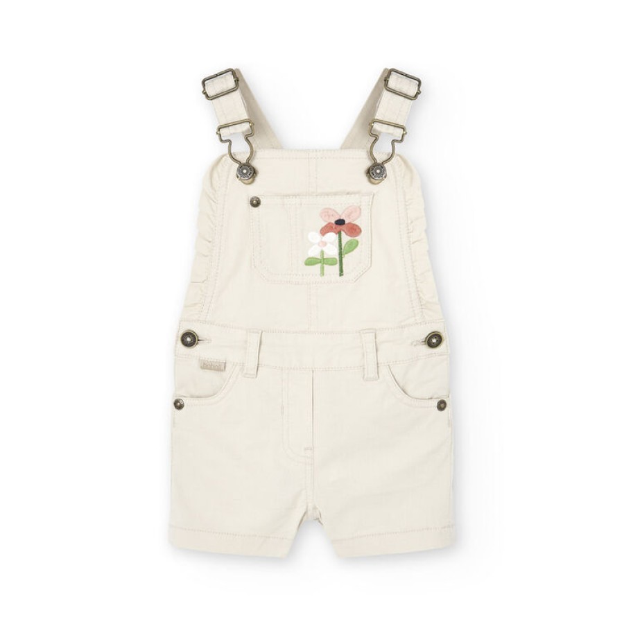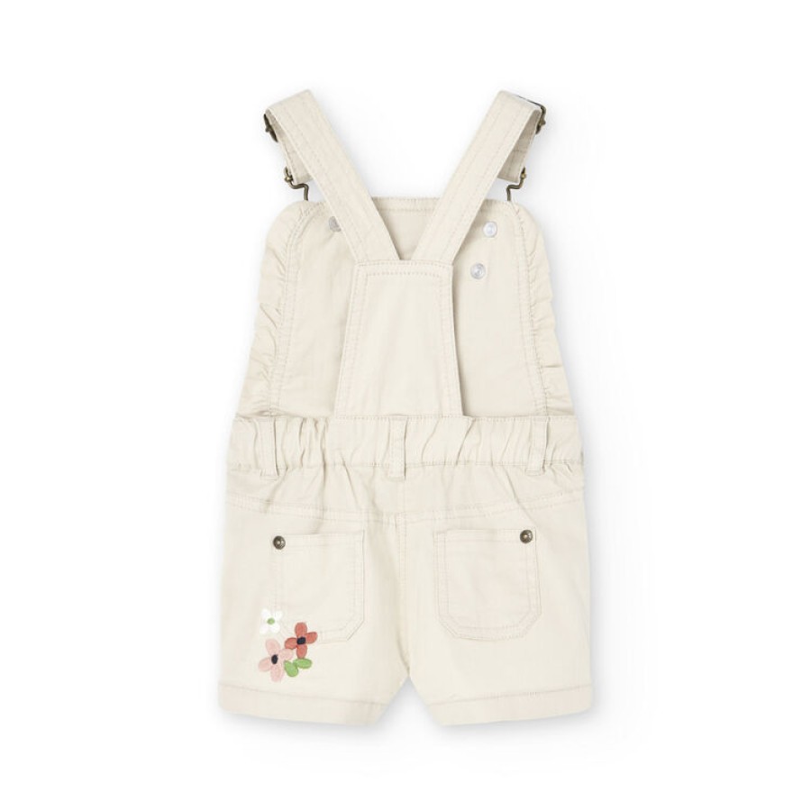Σαλοπέτα σορτς μικρό κορίτσι μπεζ με λουλούδια μπροστά και πίσω
