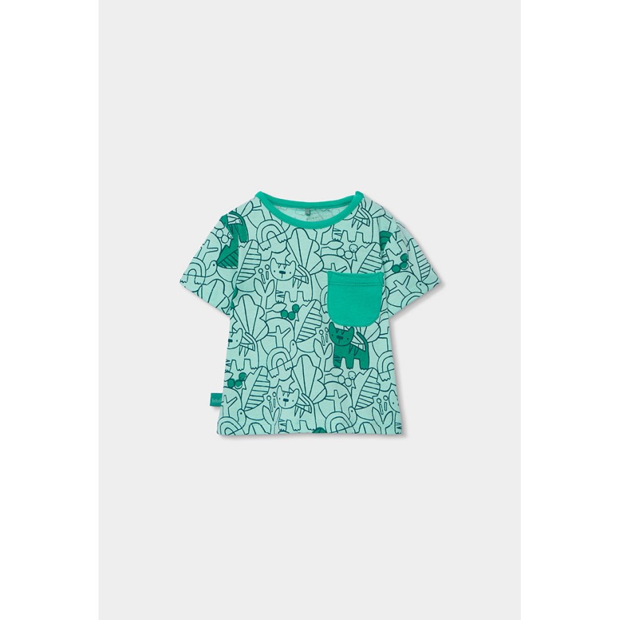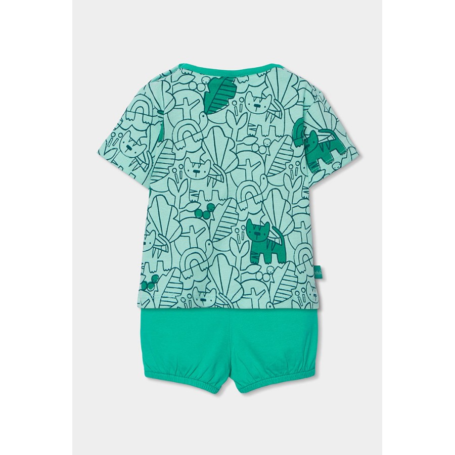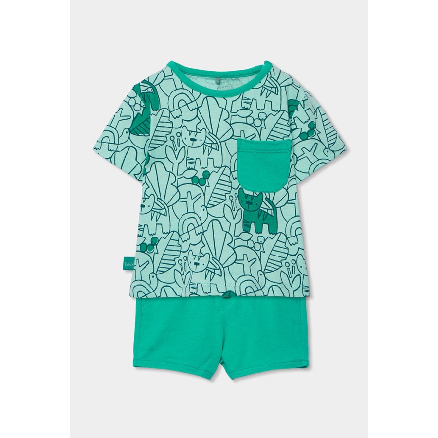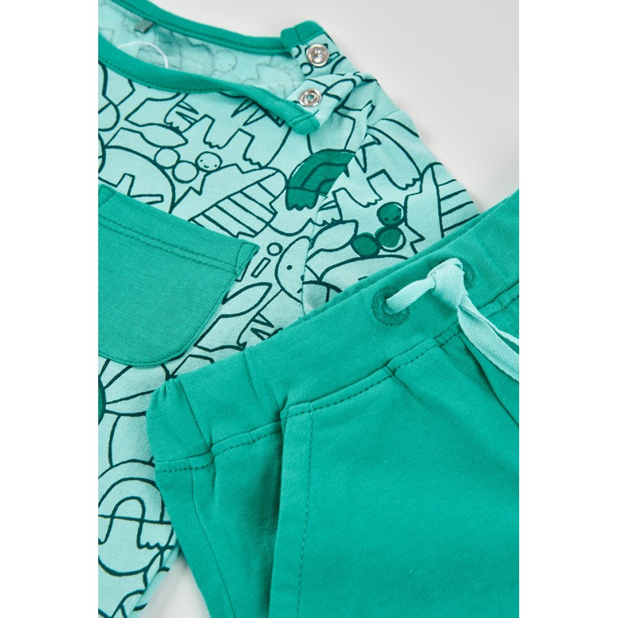 Σετ βρεφικό αγόρι μπλούζα και σορτσάκι μέντα με σχέδιο.