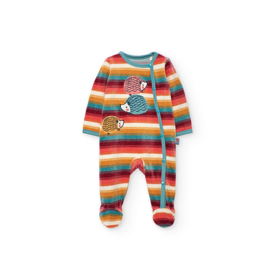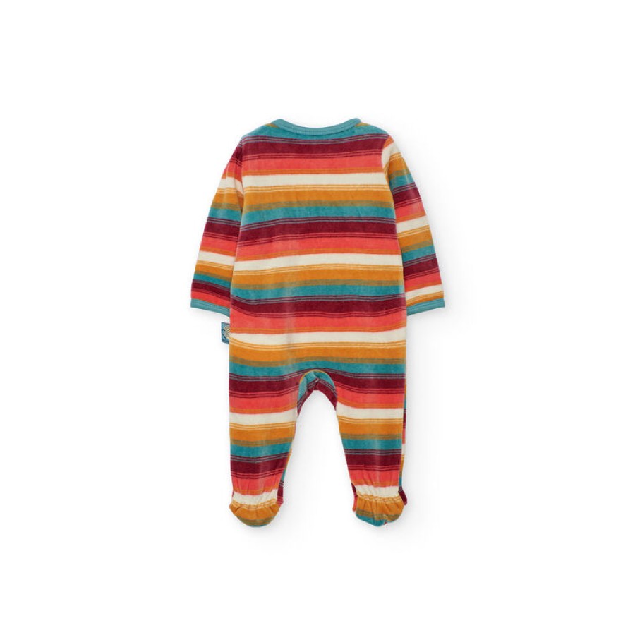 Φορμάκι βρεφικό βελουτέ unisex ριγέ με σχέδιο.