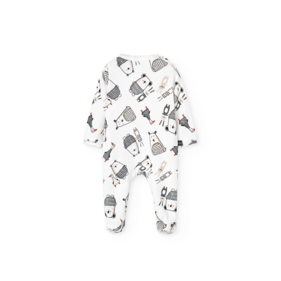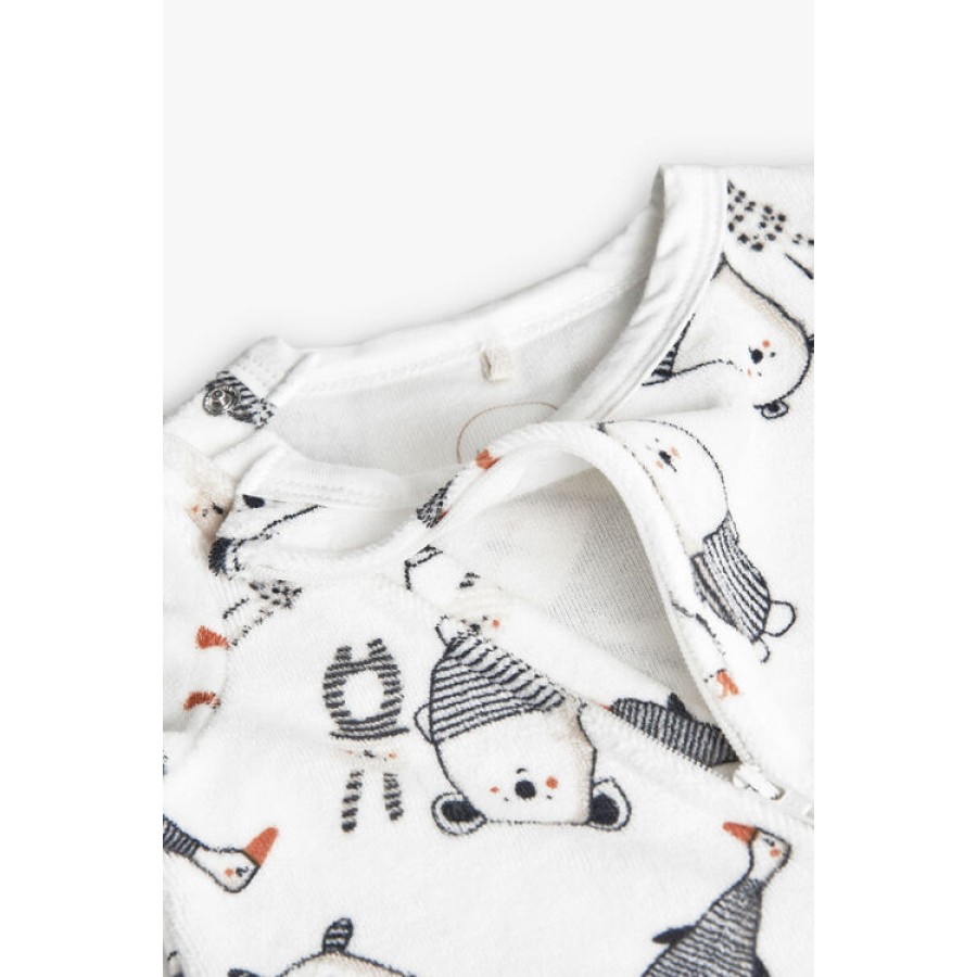 Φορμάκι βρεφικό βελουτέ unisex με σχέδιο αρκουδάκια σε εκρού χρώμα.