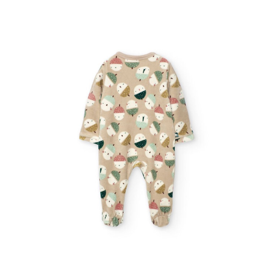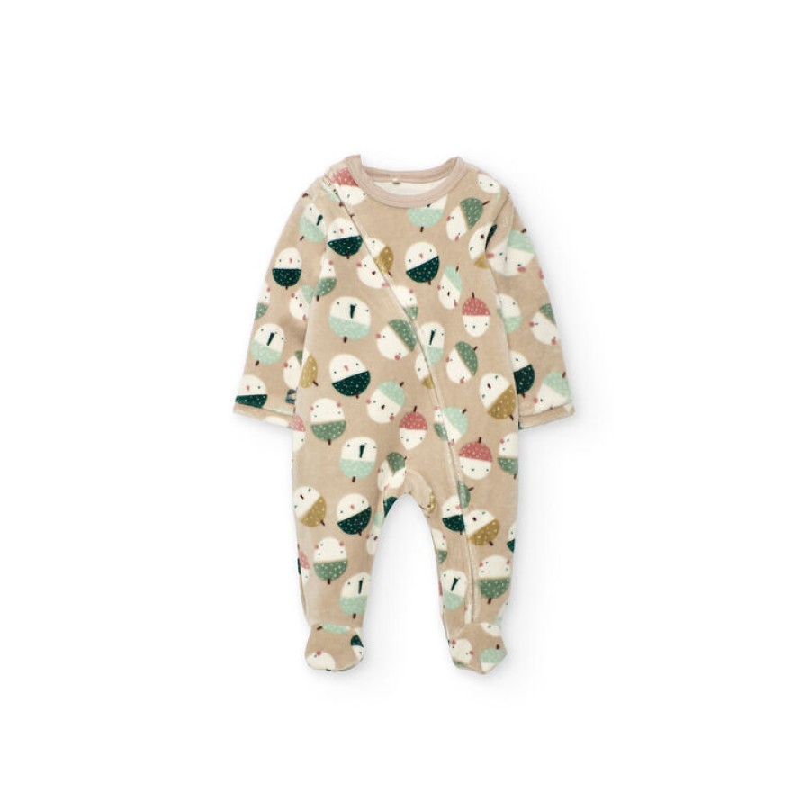 Φορμάκι βρεφικό βελουτέ unisex μπεζ με σχέδιο.