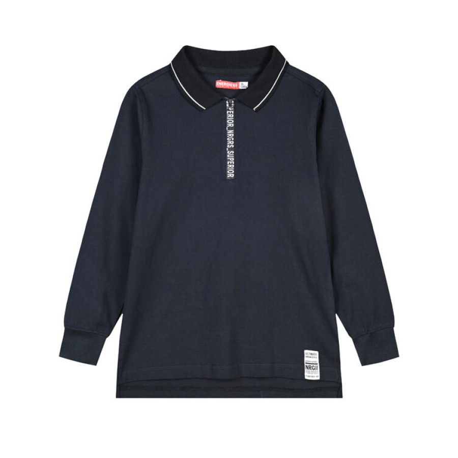 Βαμβακερή μακό πόλο με τύπωμα στο φερμουάρ και στην πλάτη με ριπ μανσέτα για αγόρι