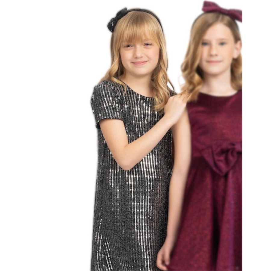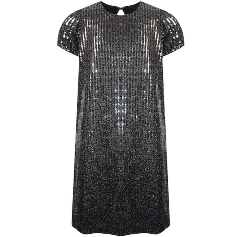 Κοντομάνικο φόρεμα με παγιέτες και εσωτερική φόδρα. Κλείνει με κουμπί