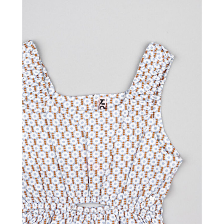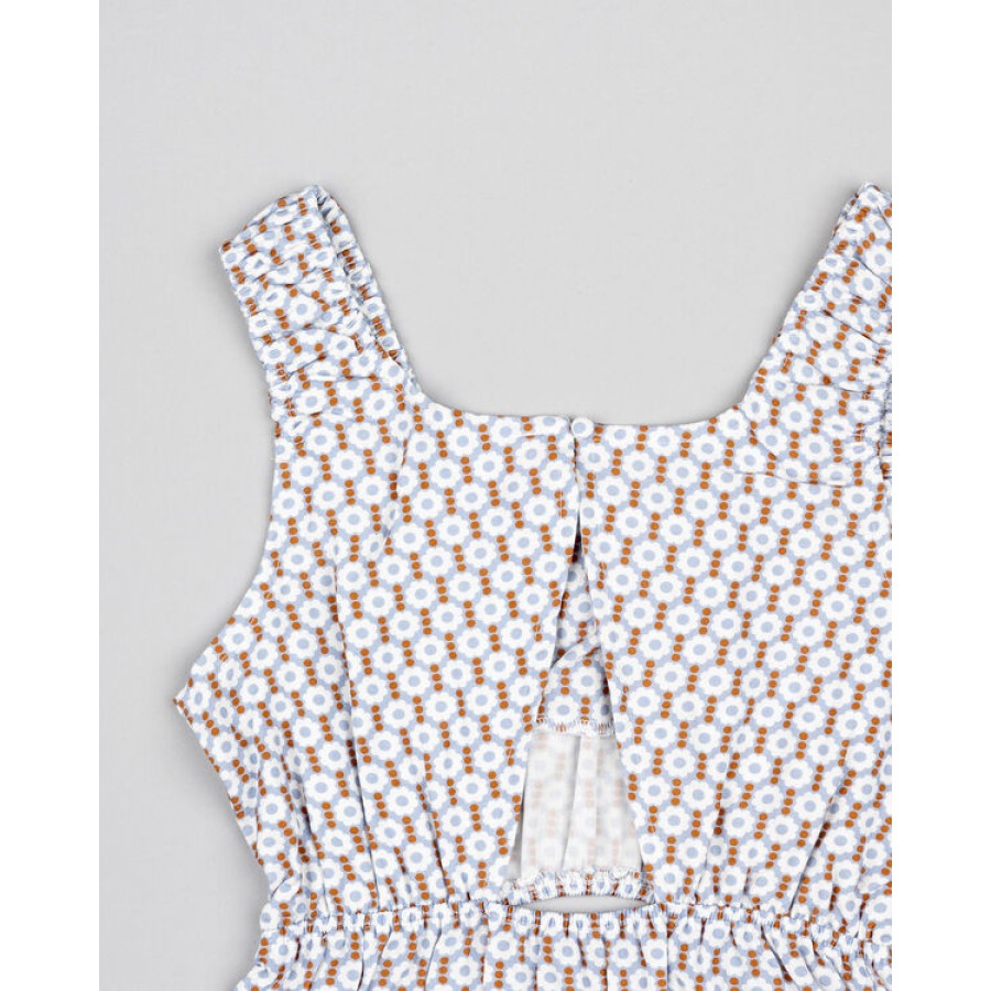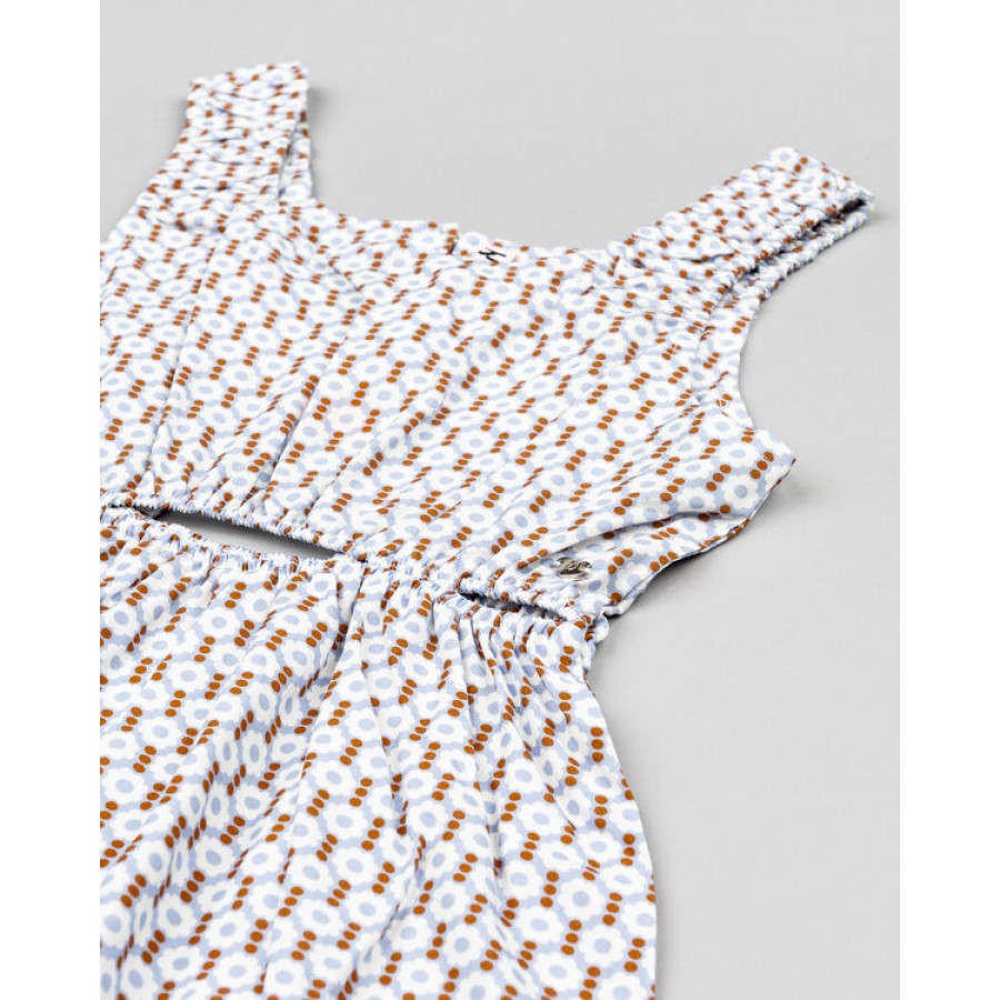 Εμπριμέ φόρεμα σε αποχρώσεις του σιέλ με λευκό και πορτοκαλί
