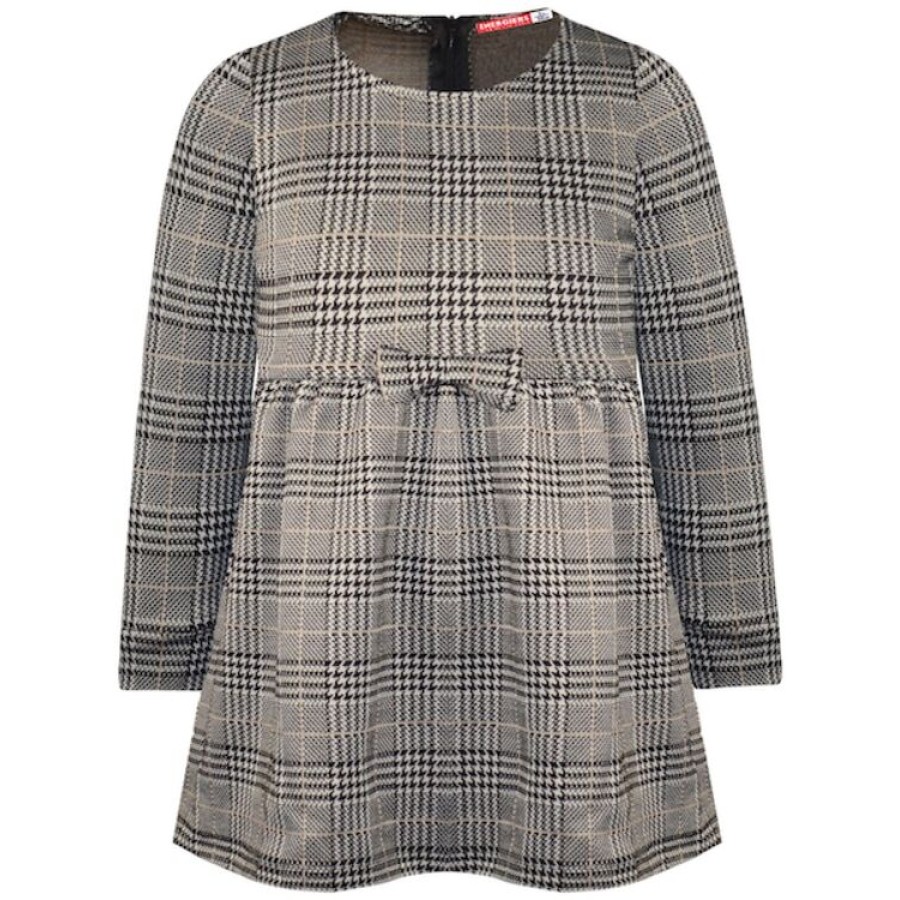 Καρό, ασπρόμαυρο φόρεμα με διακοσμητικό φιόγκο. Κλείνει με φερμουάρ