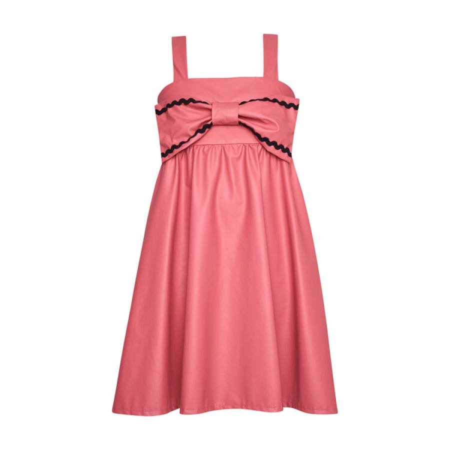 Ροζ φόρεμα δερματίνη με τιράντες,