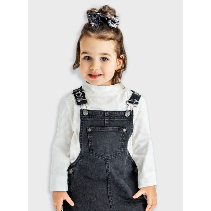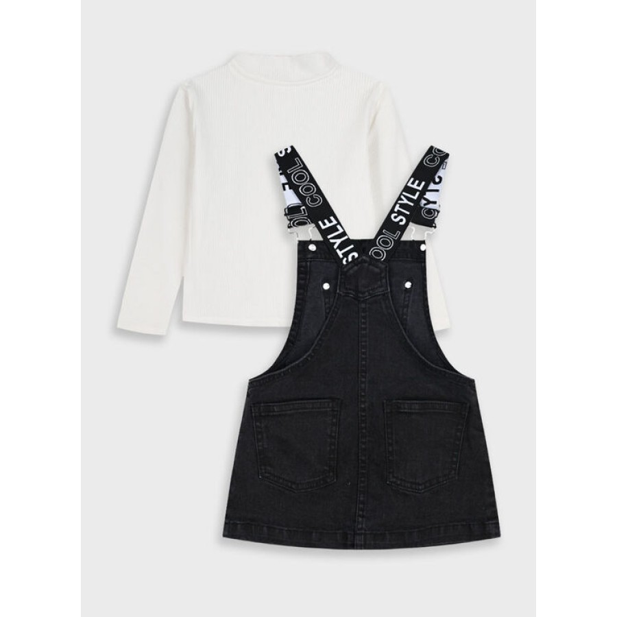 Φόρεμα σαλοπέτα τζιν με εκρού μπλούζα