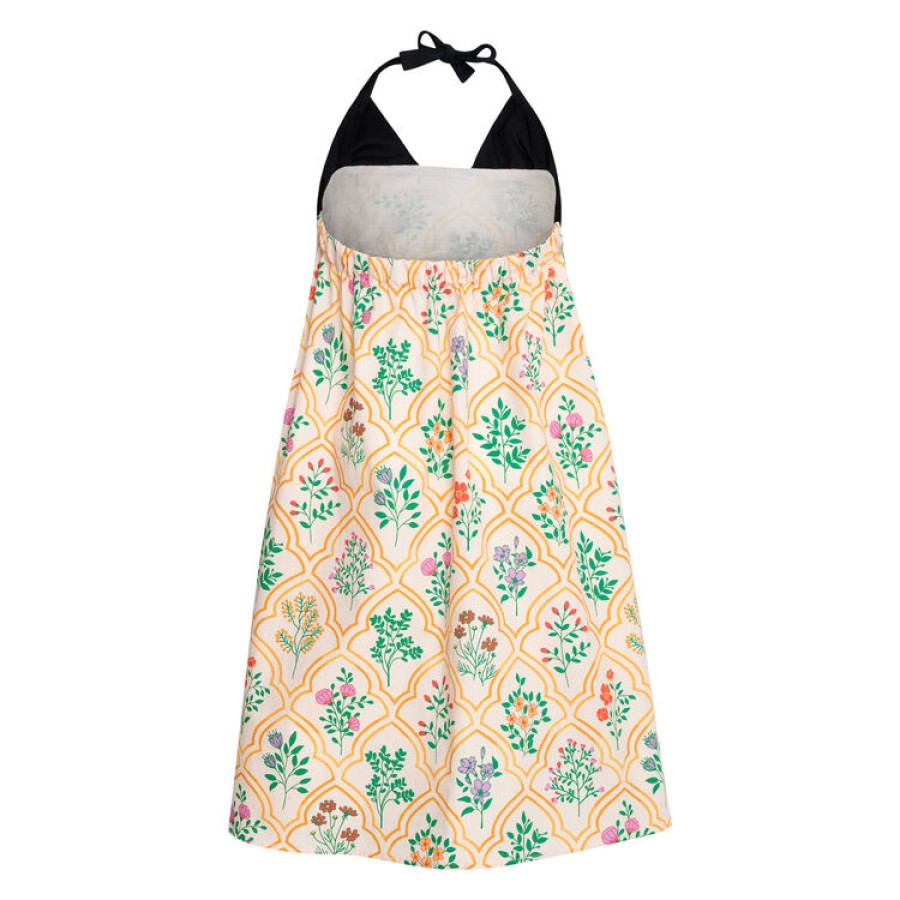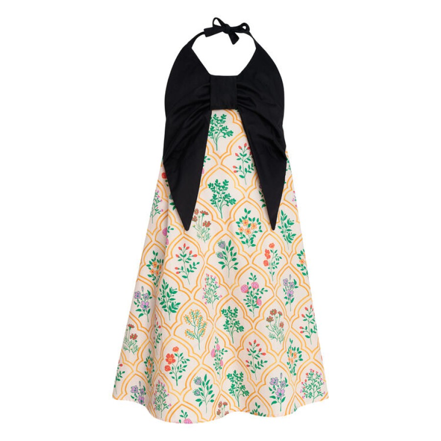 Φόρεμα εμπριμέ για κορίτσι σε αποχρώσεις μπεζ κίτρινο με μαύρο μπούστο