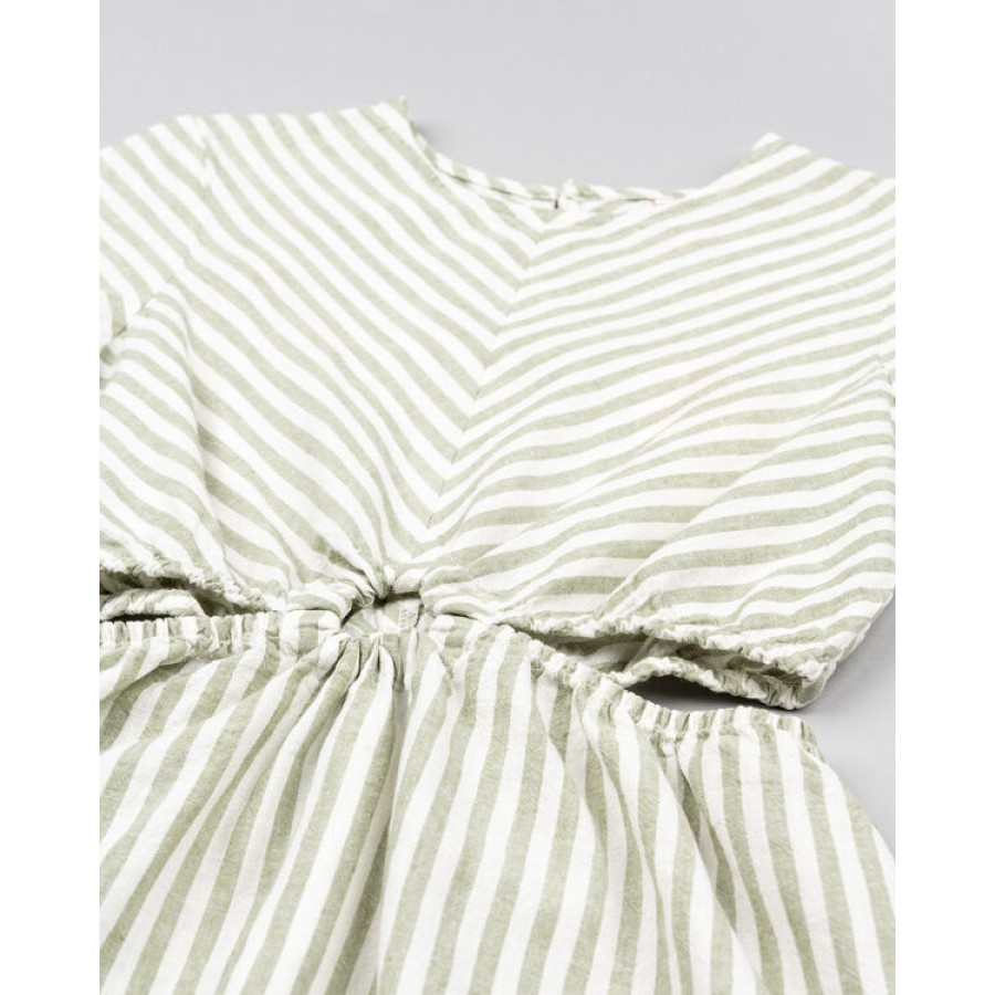 Φόρεμα ριγέ σε μπεζ χακί απόχρωση με ανοίγματα στα πλαινά
