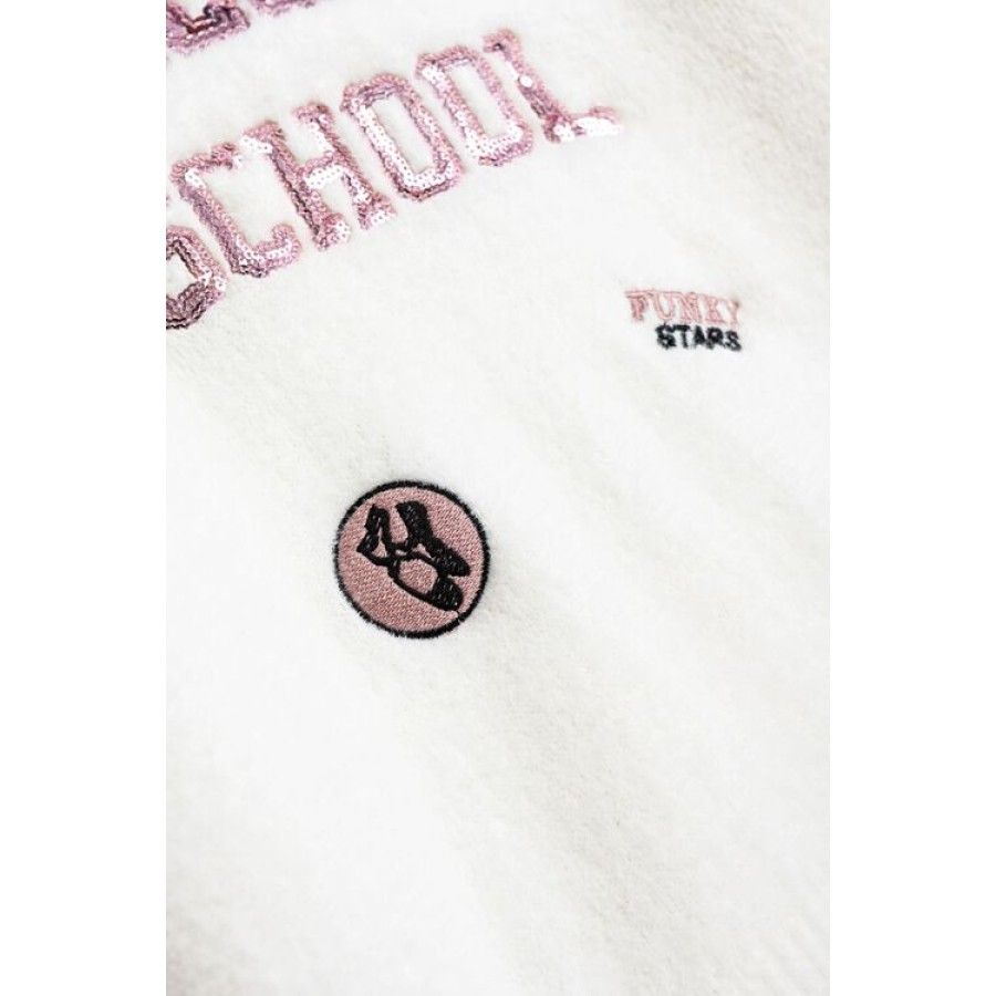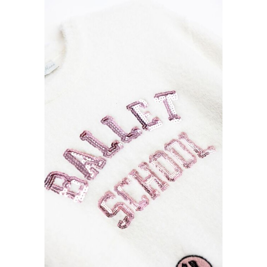 Πλεκτή μπλούζα για κορίτσι σε εκρού χρώμα με ροζ παγιέτες.