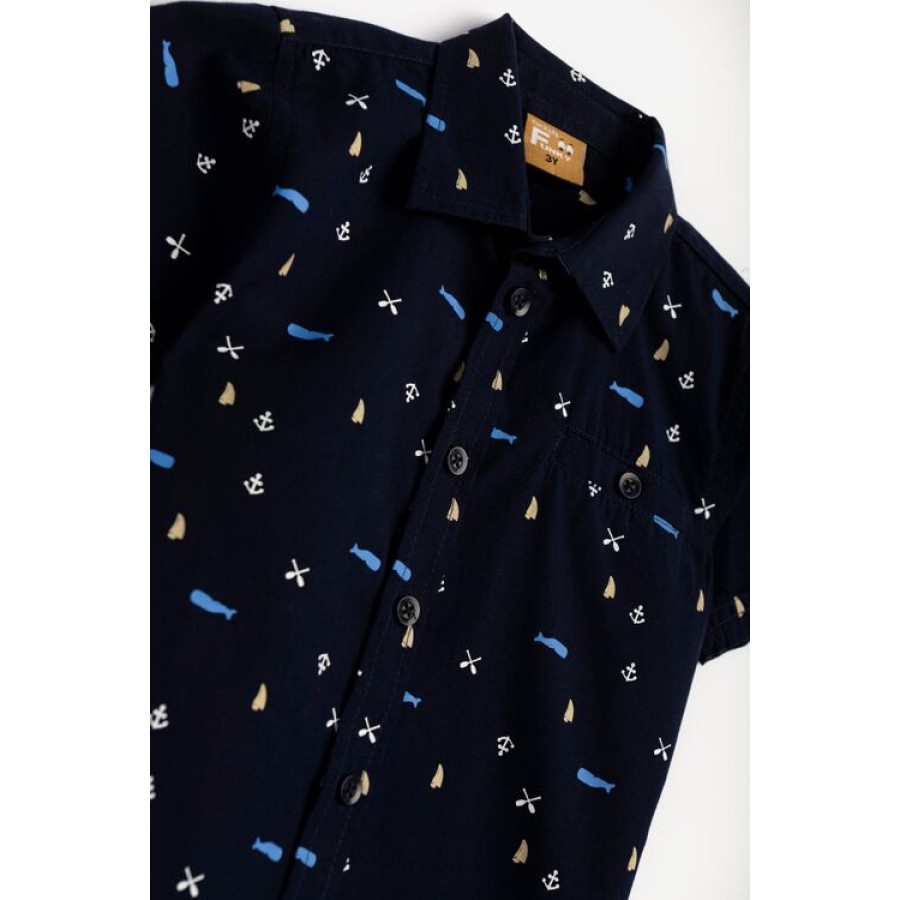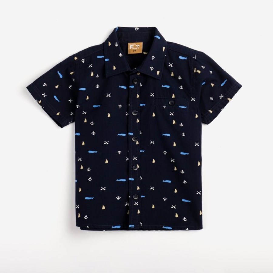 Πουκάμισο αγόρι μπλε με σχέδιο Funky