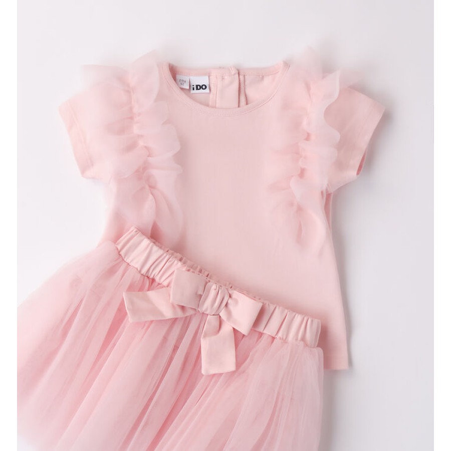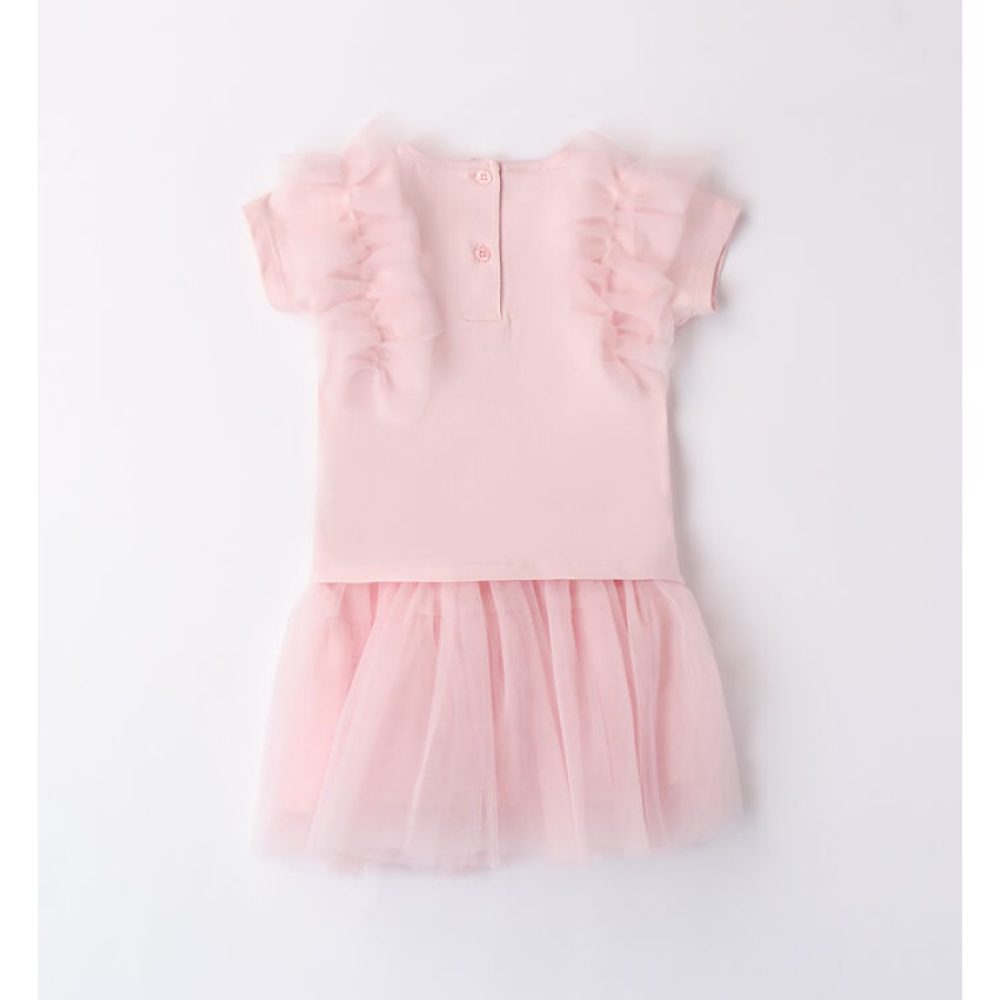 Σετ για κορίτσι με μπλουζάκι που έχει τούλι στο μανίκι και ροζ τούλινη φούστα