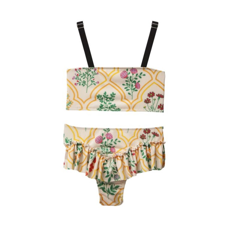 Μαγιό για κορίτσι μπικίνι με φραμπαλά στο βρακάκι εμπριμέ