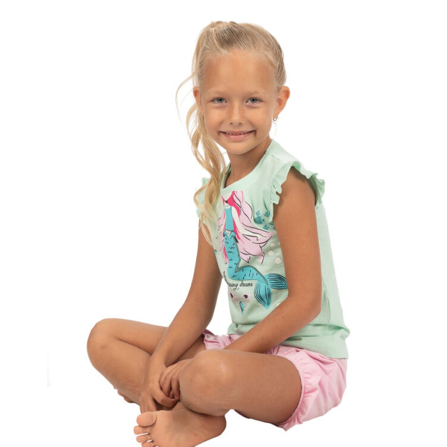 Βαμβακερή πυζάμα με τύπωμα στη μπλούζα γοργόνα.