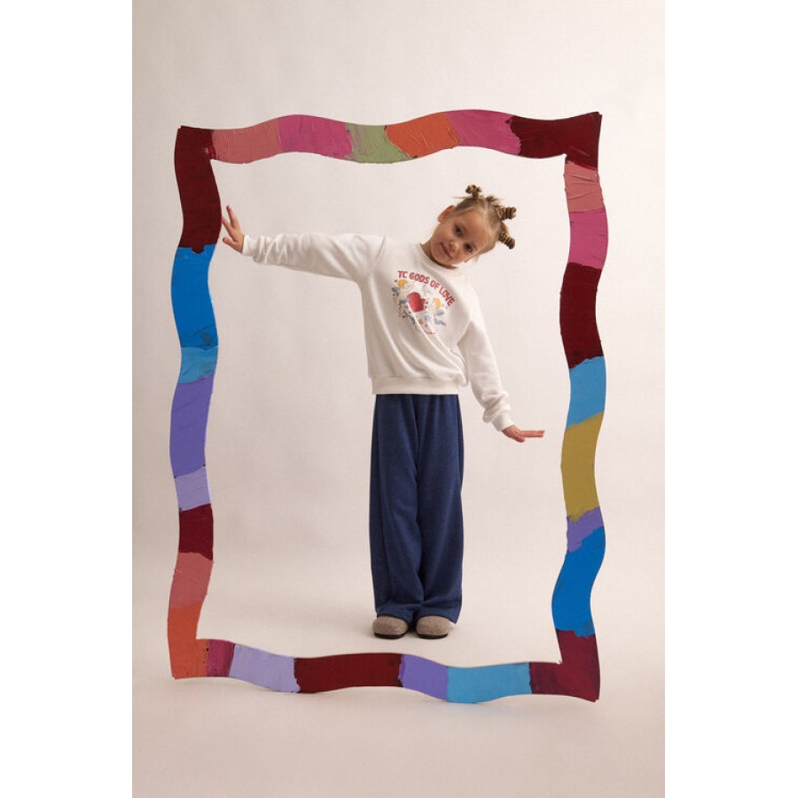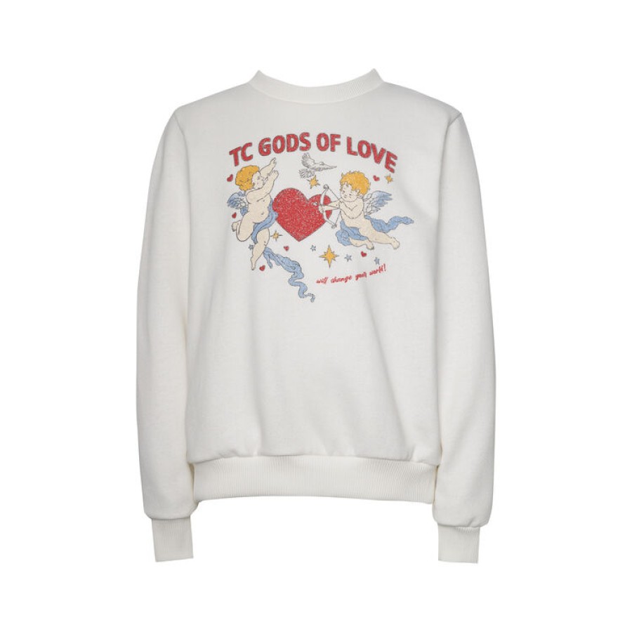 με μπλούζα σε χρώμα άσπρο και σχέδιο με γυαλάδα
