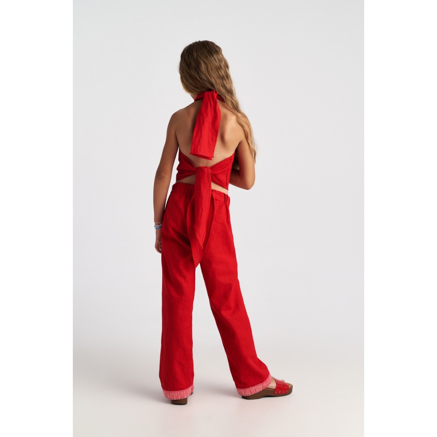 και παντελόνι με κρόσσια στο τελείωμα σε χρώμα κόκκινο