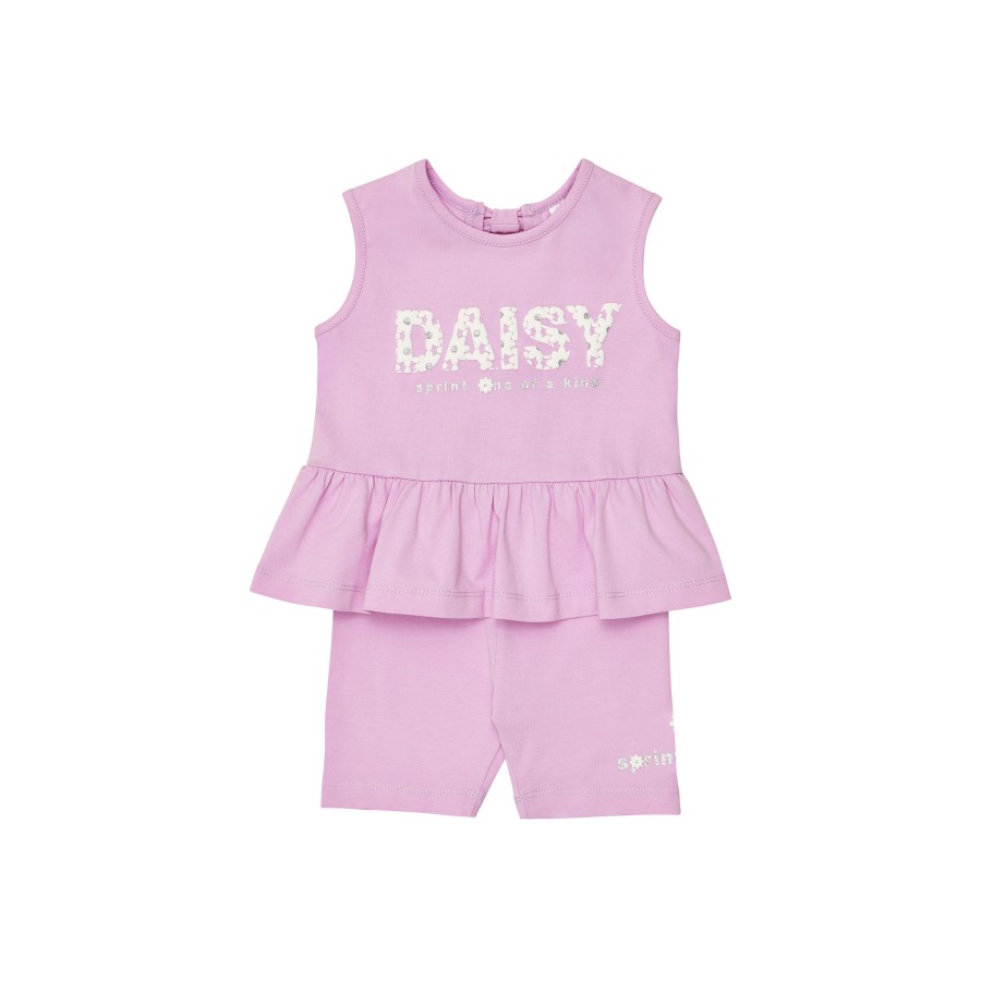 με μπλούζα αμάνικη και σορτς σε χρώμα λιλά