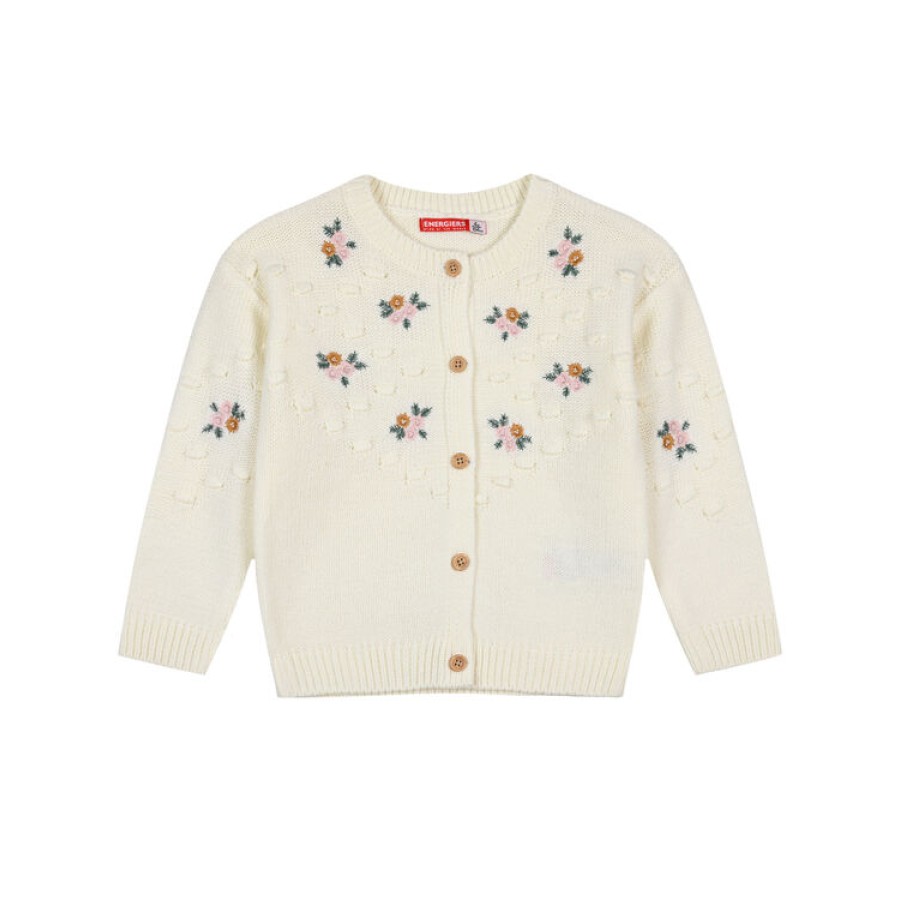 Πλεκτή ζακέτα με ανάγλυφη πλέξη και κεντημένα