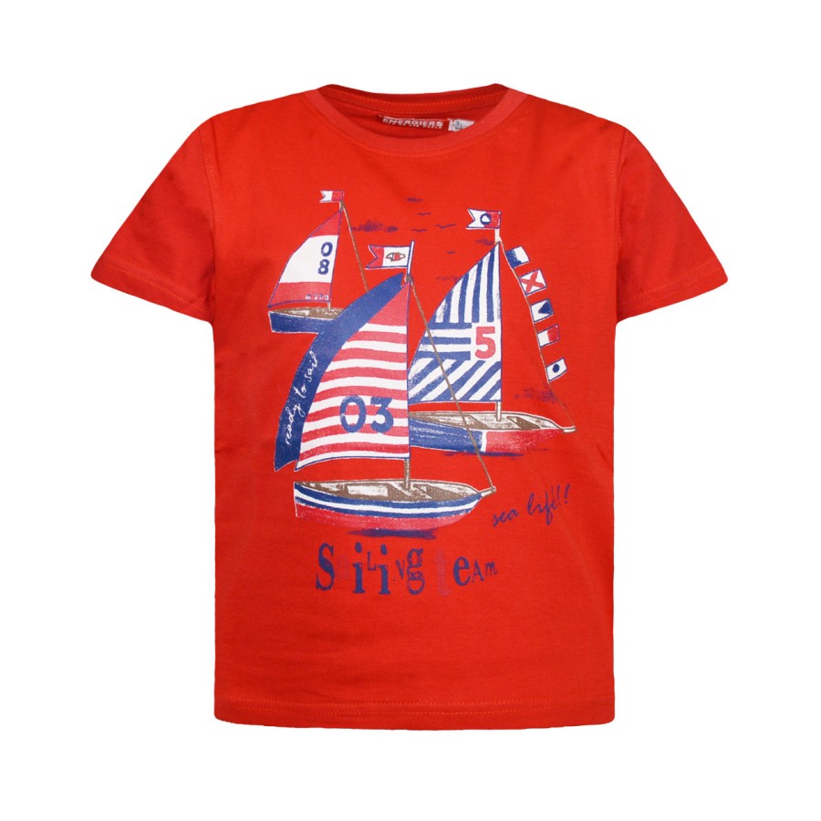 Ευκολοφόρετη βαμβακερή μπλούζα με καλοκαιρινό τύπωμα με καραβάκια