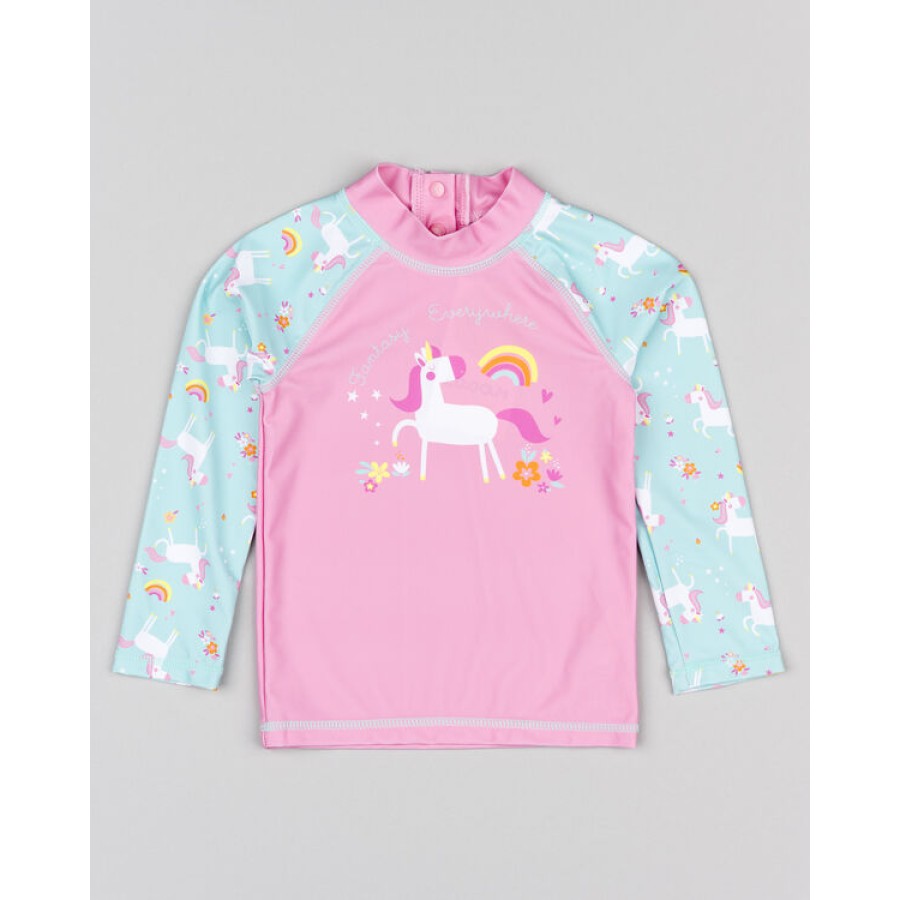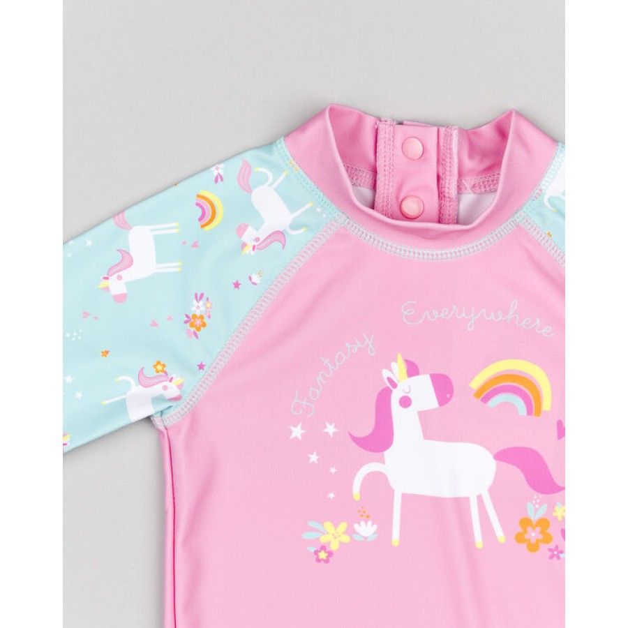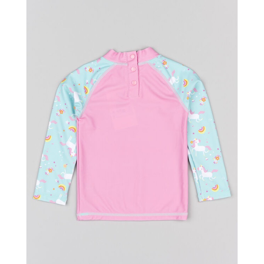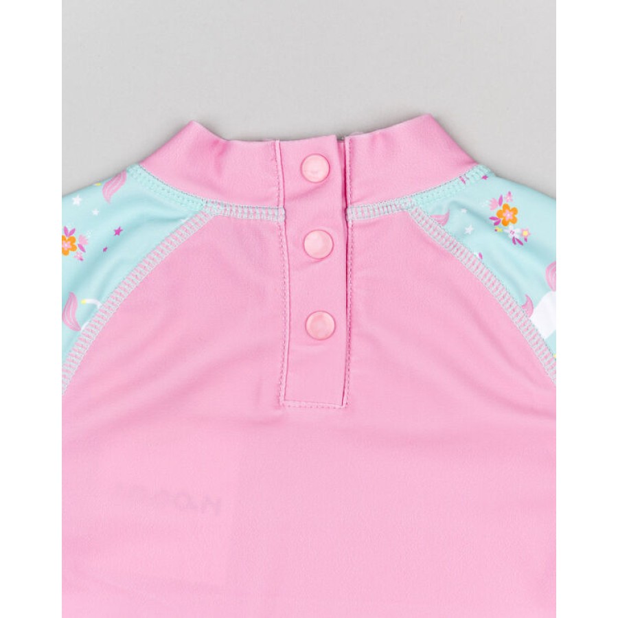 Μαγιό μπλουζάκι μακρυμάνικο, ροζ κολλητό με μονόκερους