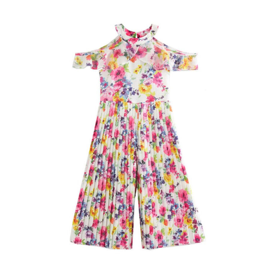 Άνετη και στυλάτη, αυτή η παιδική ολόσωμη πλισέ εμπριμέ φόρμα