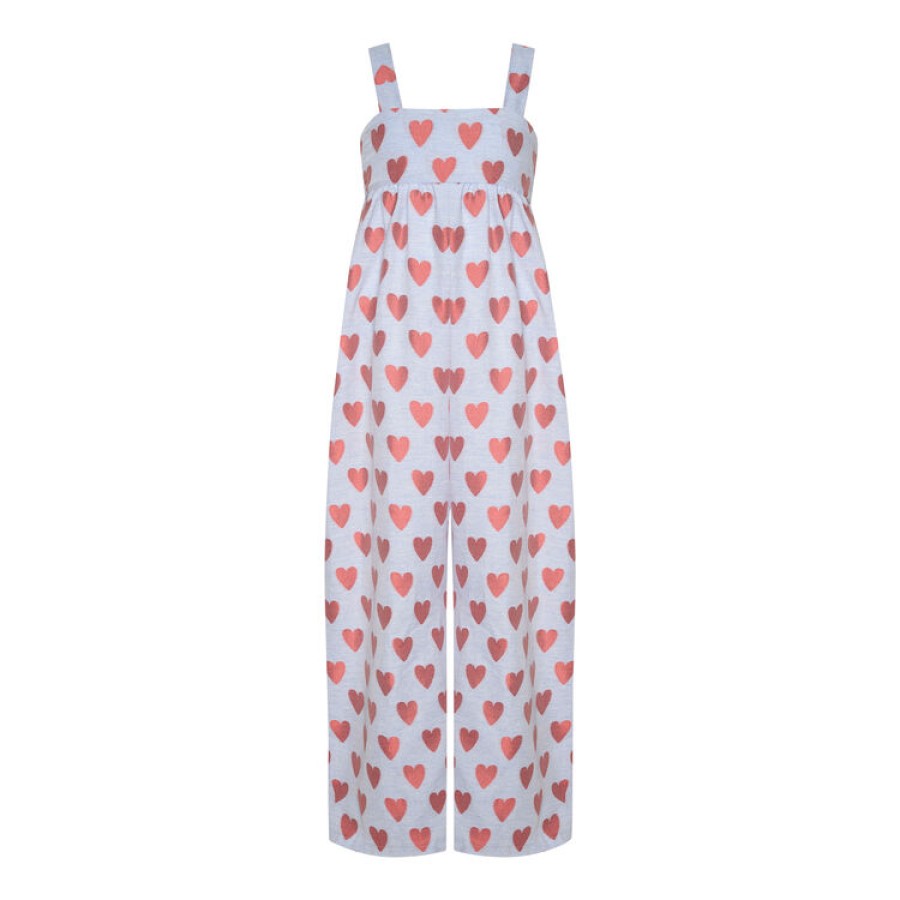Ολόσωμη φόρμα για κορίτσι σε γαλάζιο χρώμα με κόκκινες καρδιές
