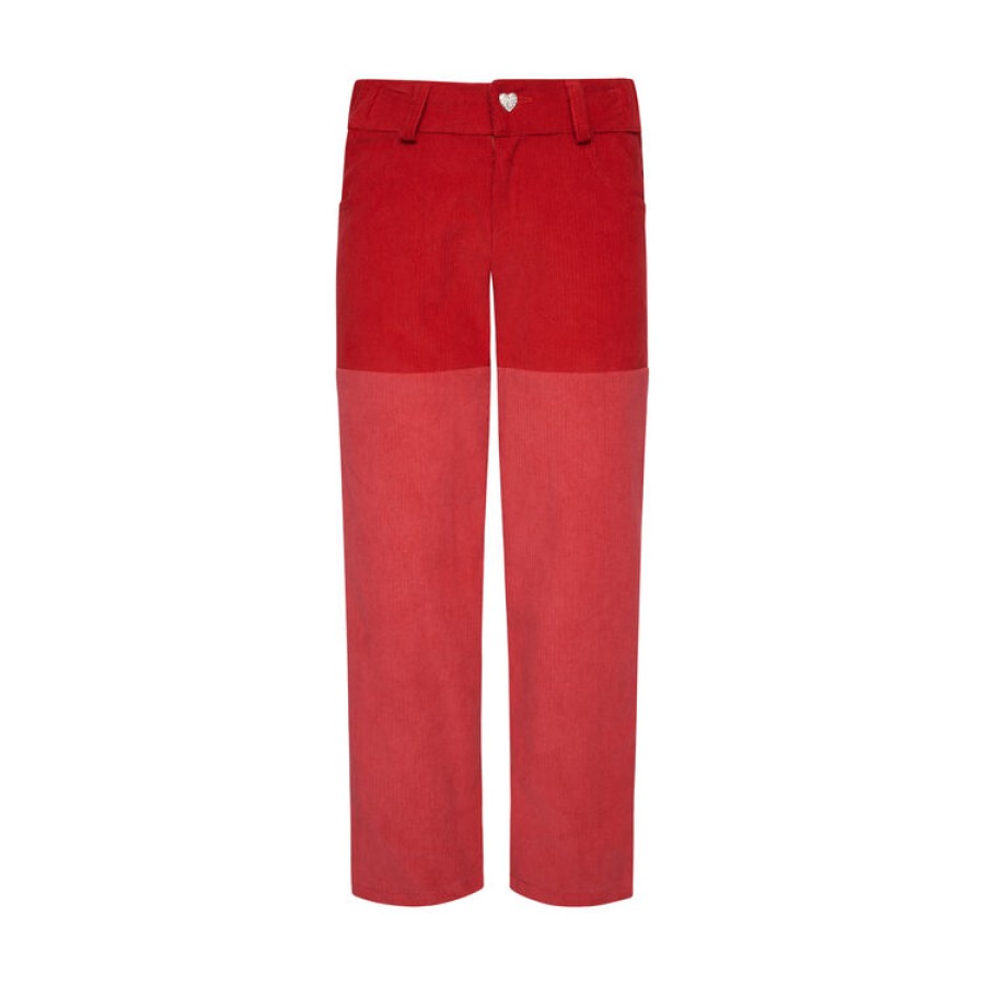 Παντελόνι κοτλέ δίχρωμο με κουμπί κόσμημα καρδιά