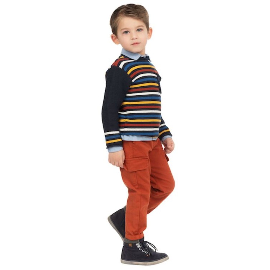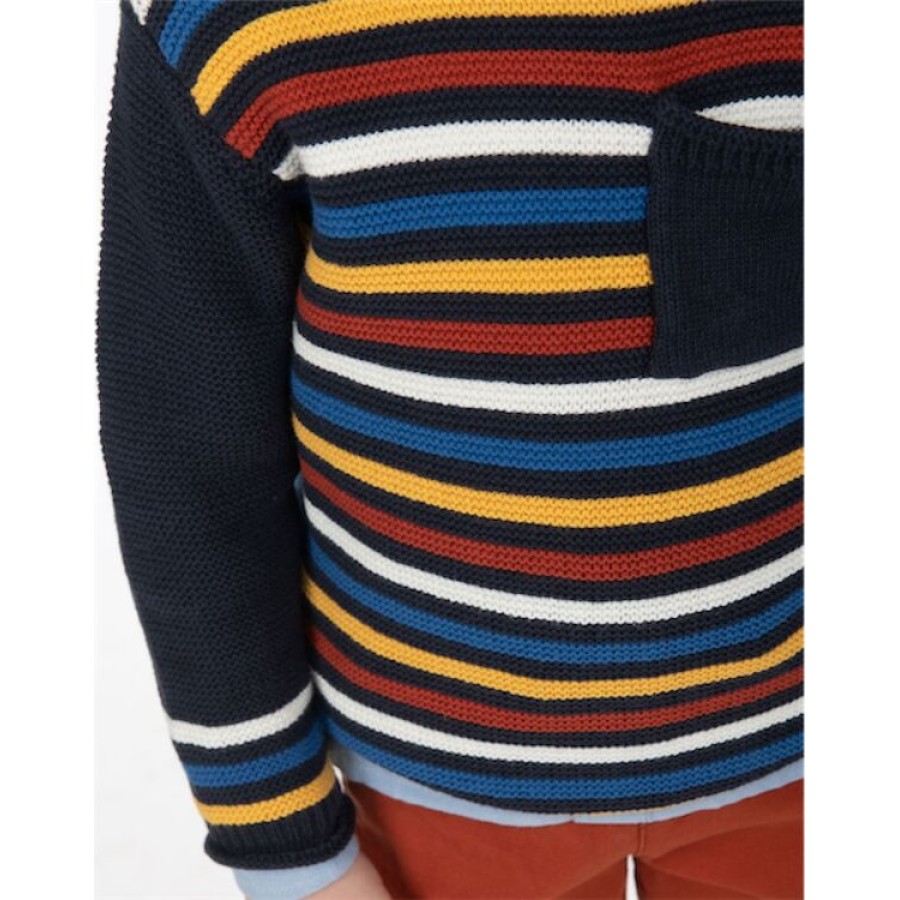 Πλεκτή ριγέ μπλούζα με τσέπη και κουμπάκια στον ώμο