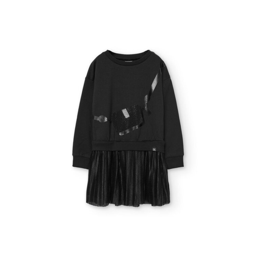 Φόρεμα φούτερ σε χρώμα μαύρο στο κάτω μέρος πλισέ.