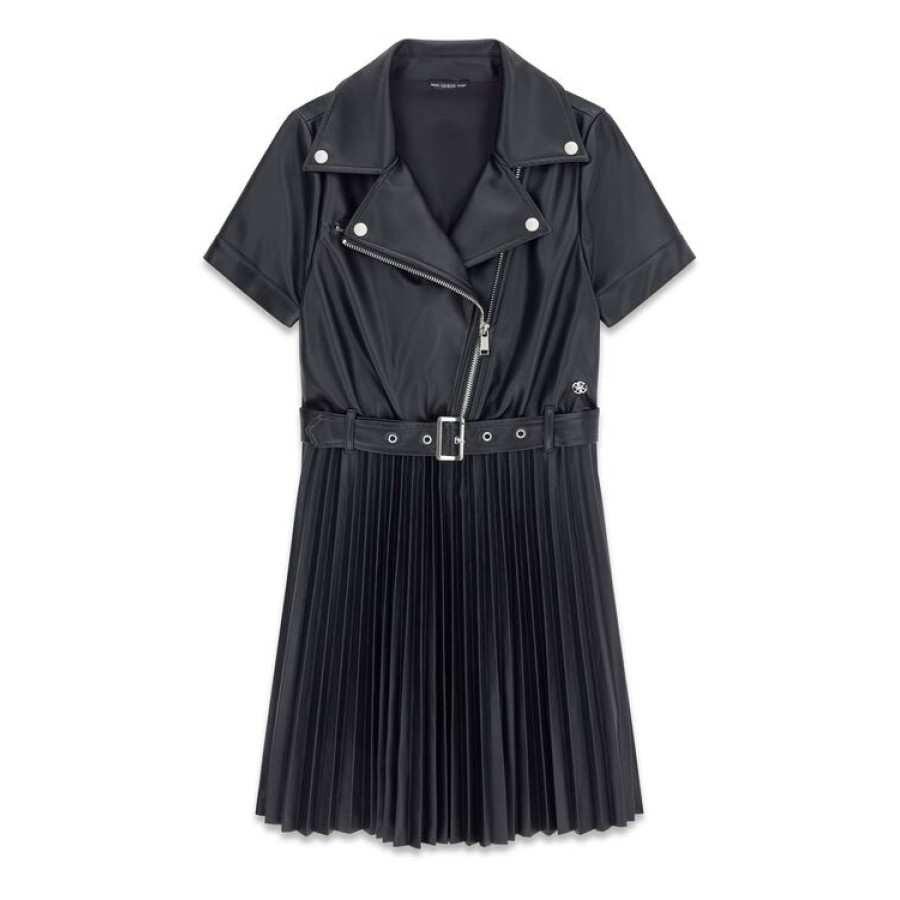 Φόρεμα κορίτσι δερματίνη μαύρο Guess