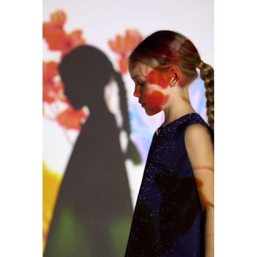 σε χρώμα μπλε σκούρο με γυαλάδα στην ύφανση