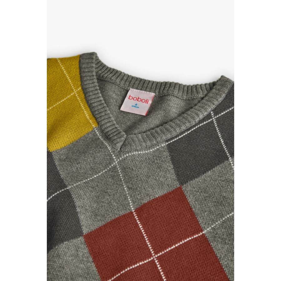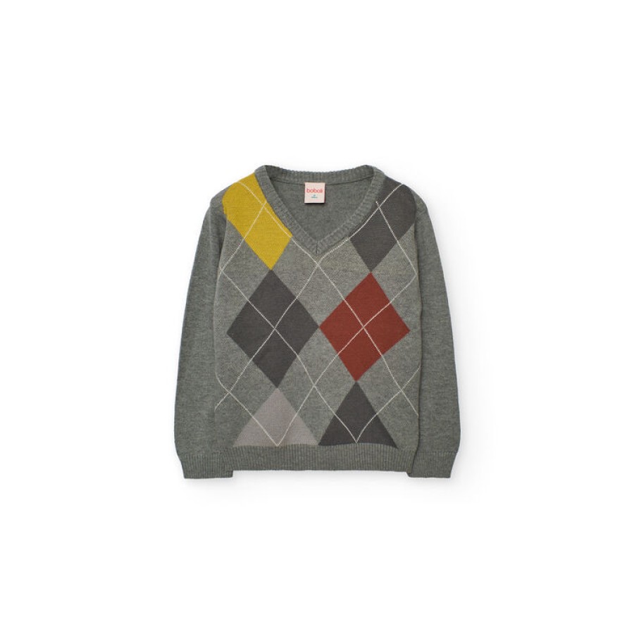 Μπλούζα πλεκτή σε χρώμα μπορντό/γκρι/μουσταρδί με ρόμβους.