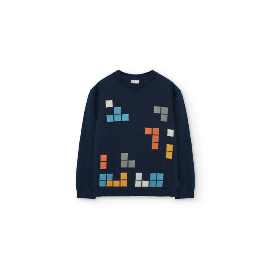 Μπλούζα πλεκτή σε χρώμα μπλε σκούρο με σχέδιο.