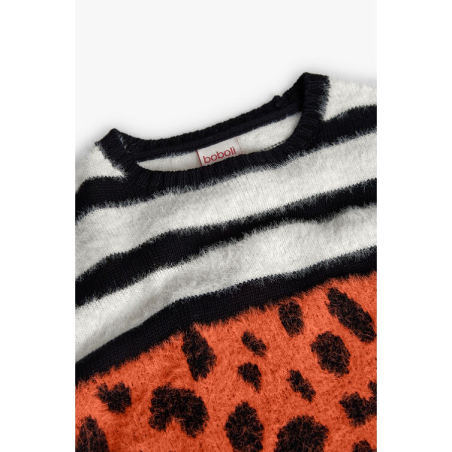 Μπλούζα πλεκτή σε χρώμα εκρού/μαύρο/πορτοκαλί.