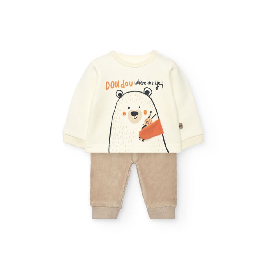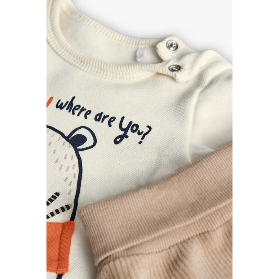 Σετ βρεφικό αγόρι με μπλούζα με σχέδιο αρκουδάκι σε εκρού χρώμα