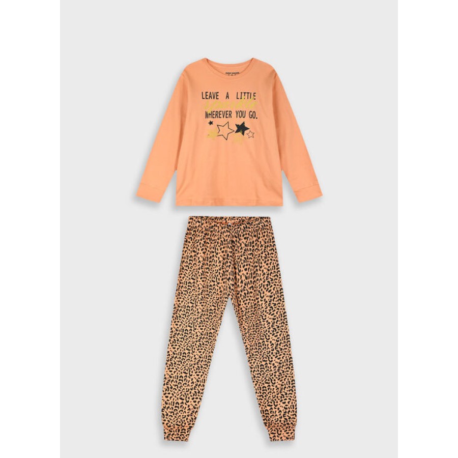 Πυζάμα με τύπωμα και εμπριμέ παντελόνι για κορίτσι